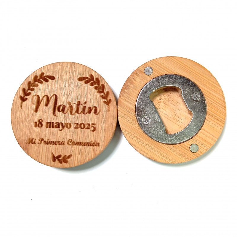 Abrebotellas en bambú personalizado con grabado láser son el recuerdo perfecto para bodas, comuniones, bautizos, aniversarios o eventos corporativos.