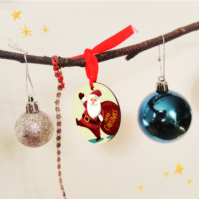 LLavero de madera con impresión en doble cara, colgante y anilla metálica.